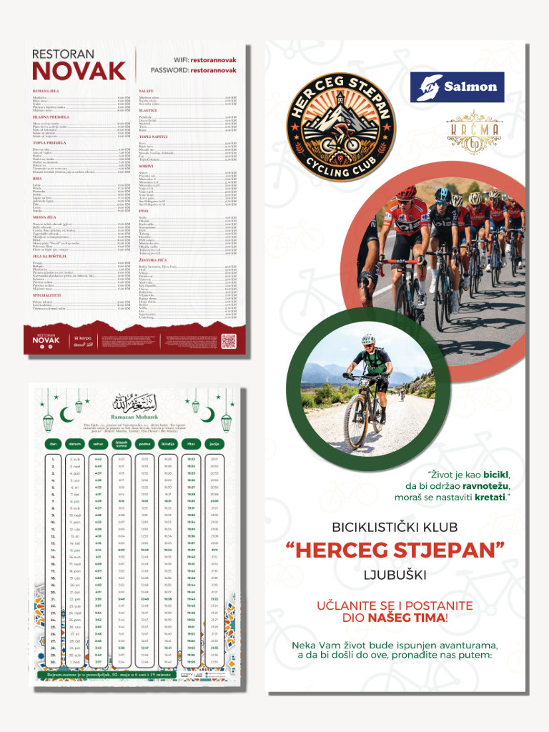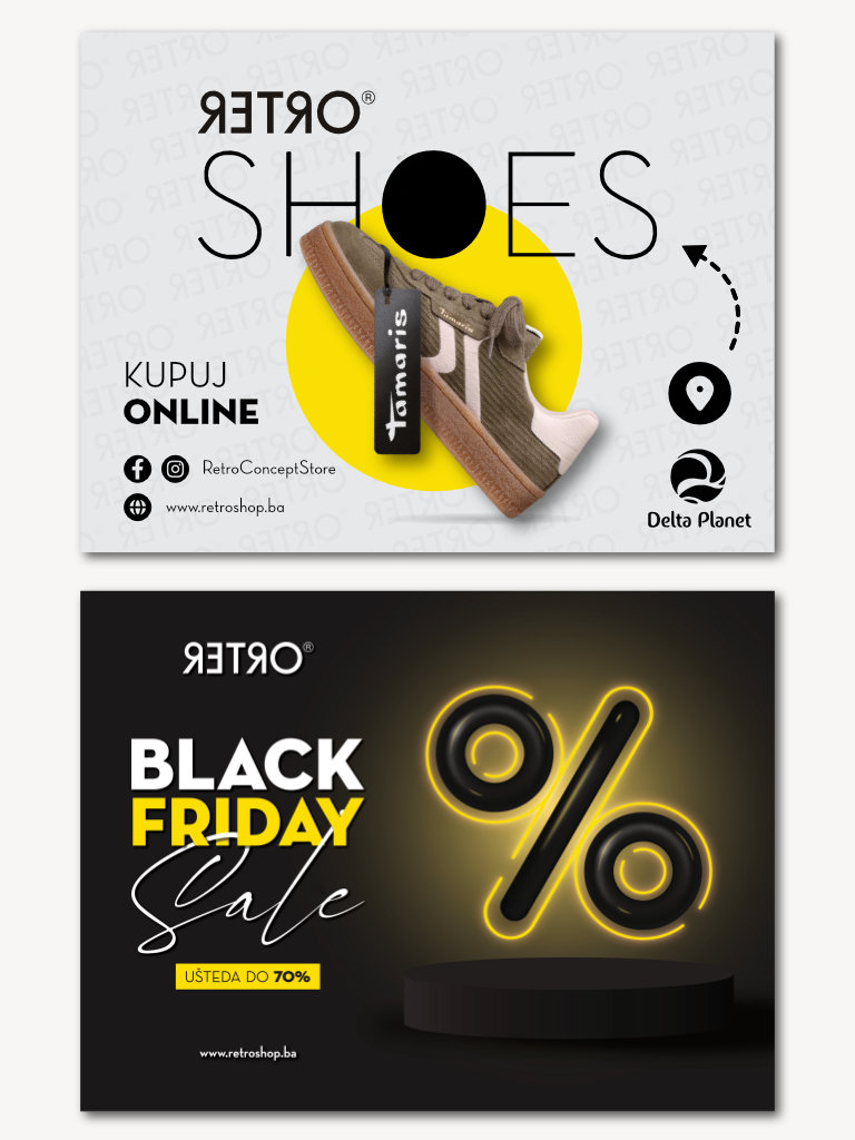 Kompletna vizualna podrška. Studijski portreti, kampanje, te grafički dizajn (logotipi, posteri, social media content) koji prati vaš brend.